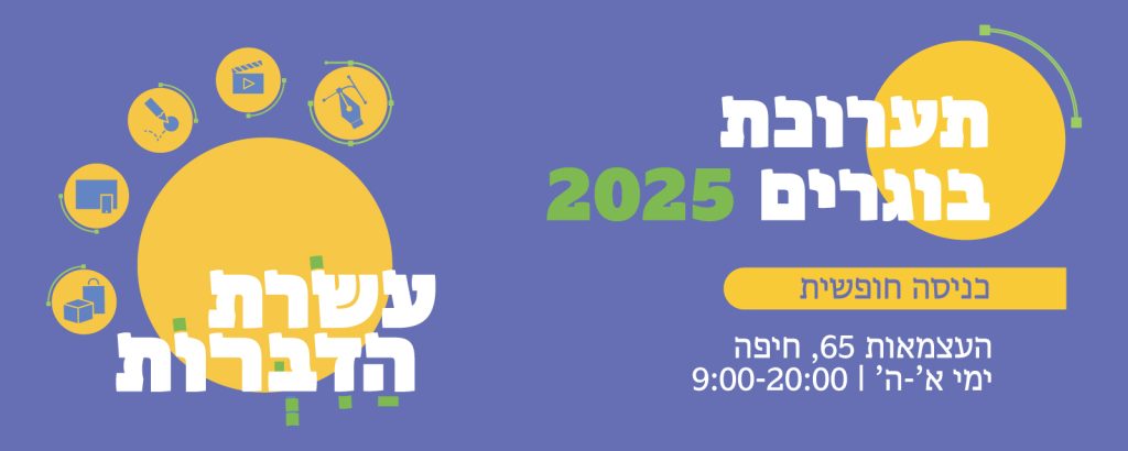 19.7 – 19:30: טקס בוגרים, חלוקת תעודות הצטיינות ומלגות והפתיחה הרשמית לתערוכת הבוגרים. 20.7: פתיחת התערוכה לקהל הרחב התערוכה תהיה פתוחה בימים א-ה 09:00 – 21:00 | יום ו' 09:00-13:00 הכניסה חופשית. פתוח בשבת ע"פ ביקוש ותיאום מראש. סיורים לקבוצות, ללא עלות. לתיאום 1800-34-30-30 העצמאות 65, קמפוס הנמל, חיפה. (לינק לוויז למובייל) "יש לי חלום" – […]
