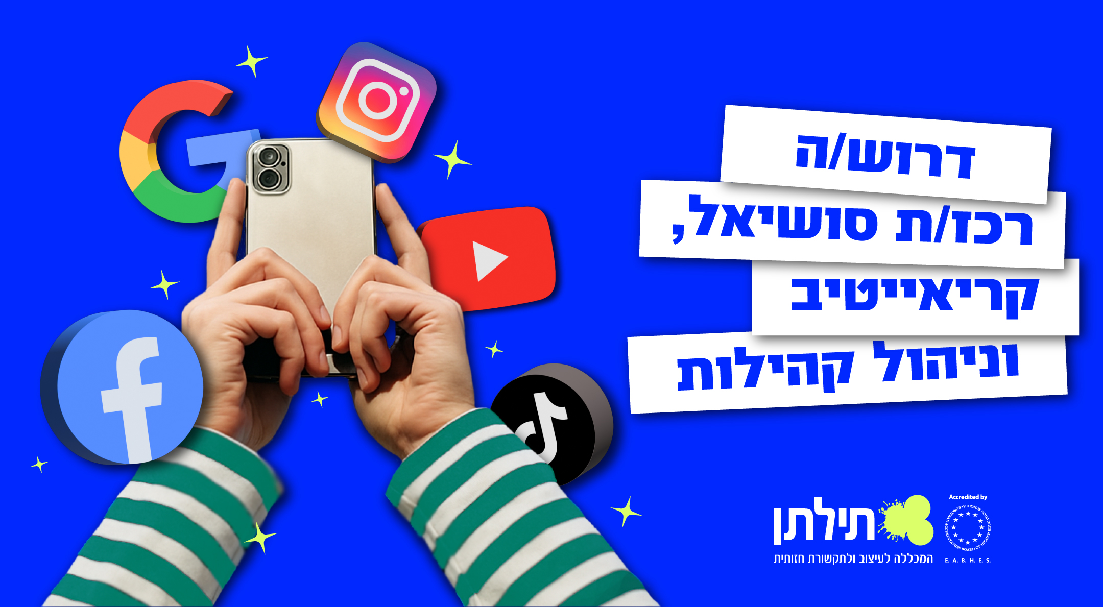דרוש איש סושיאל בשילוב ידע בקריאייטיב וניהול קהילות עבור תילתן המכללה לעיצוב ותקשורת חזותית בנמל חיפה.