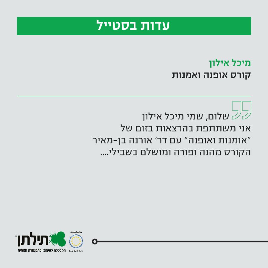 קורס אופנה ואמנות. ד"ר אורנה בן מאיר TILTAN ONLINE קורס אופנה ואמנות. ד"ר אורנה בן מאיר קורס ONLINE בפורמט מקוון ב ZOOM בפורמט לימודים חד-שבועי: בימי שלישי 12 מפגשים בין השעות 20:00 ל 21:30