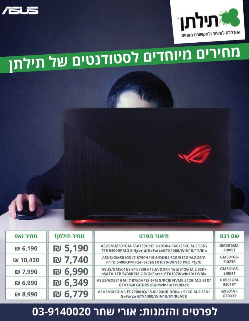 מבצע ASUS TILTAN מחירים מיוחדים לסטודנטים